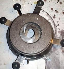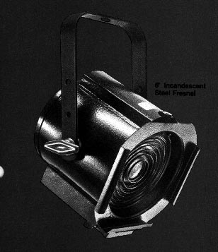 This is a 6″ Fresnel. The Fresnel uses a Fresnel lens, hence, its name. This unit provides a soft, circular light and is often used for back light and down light. At least in our theater.